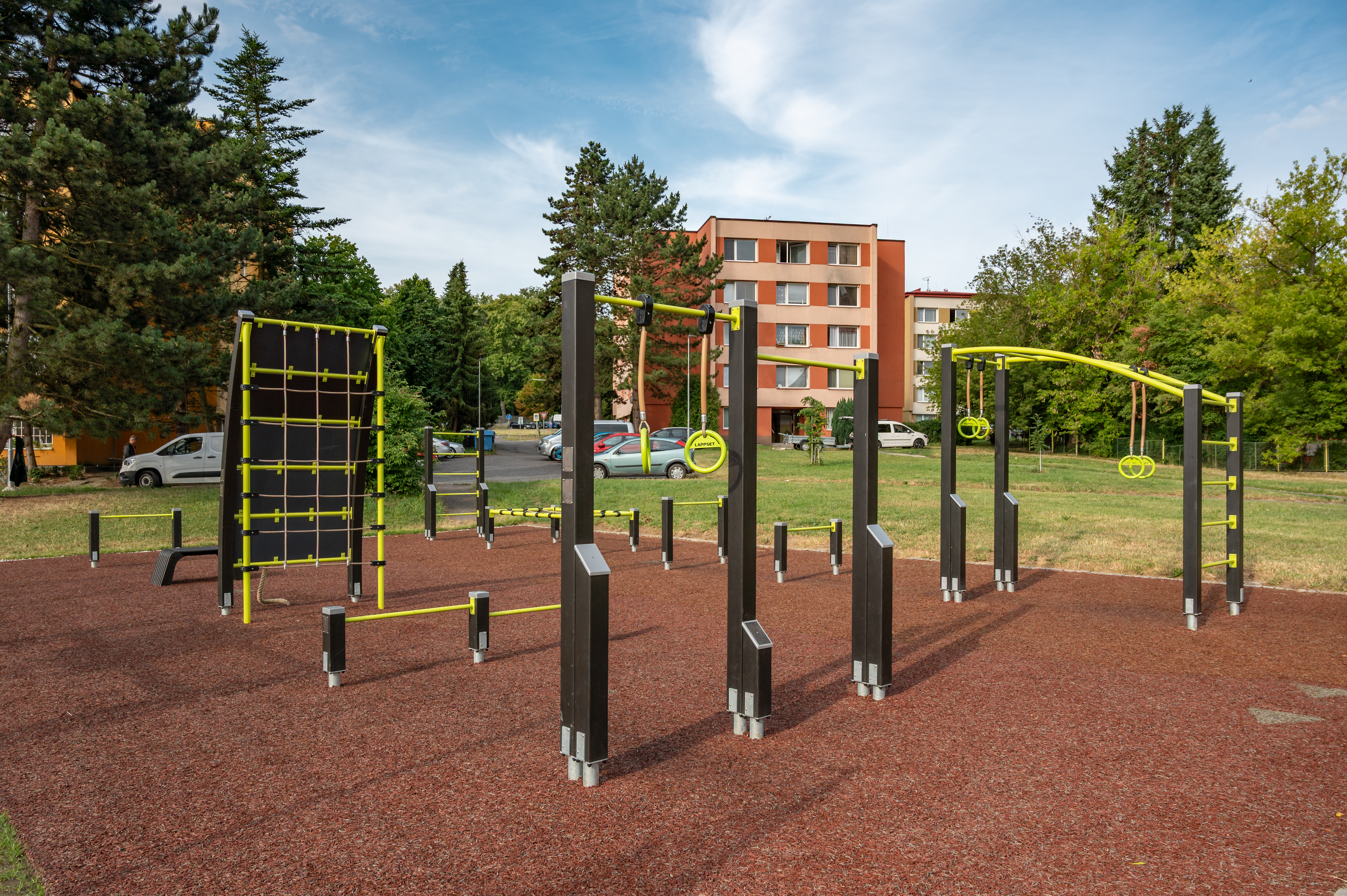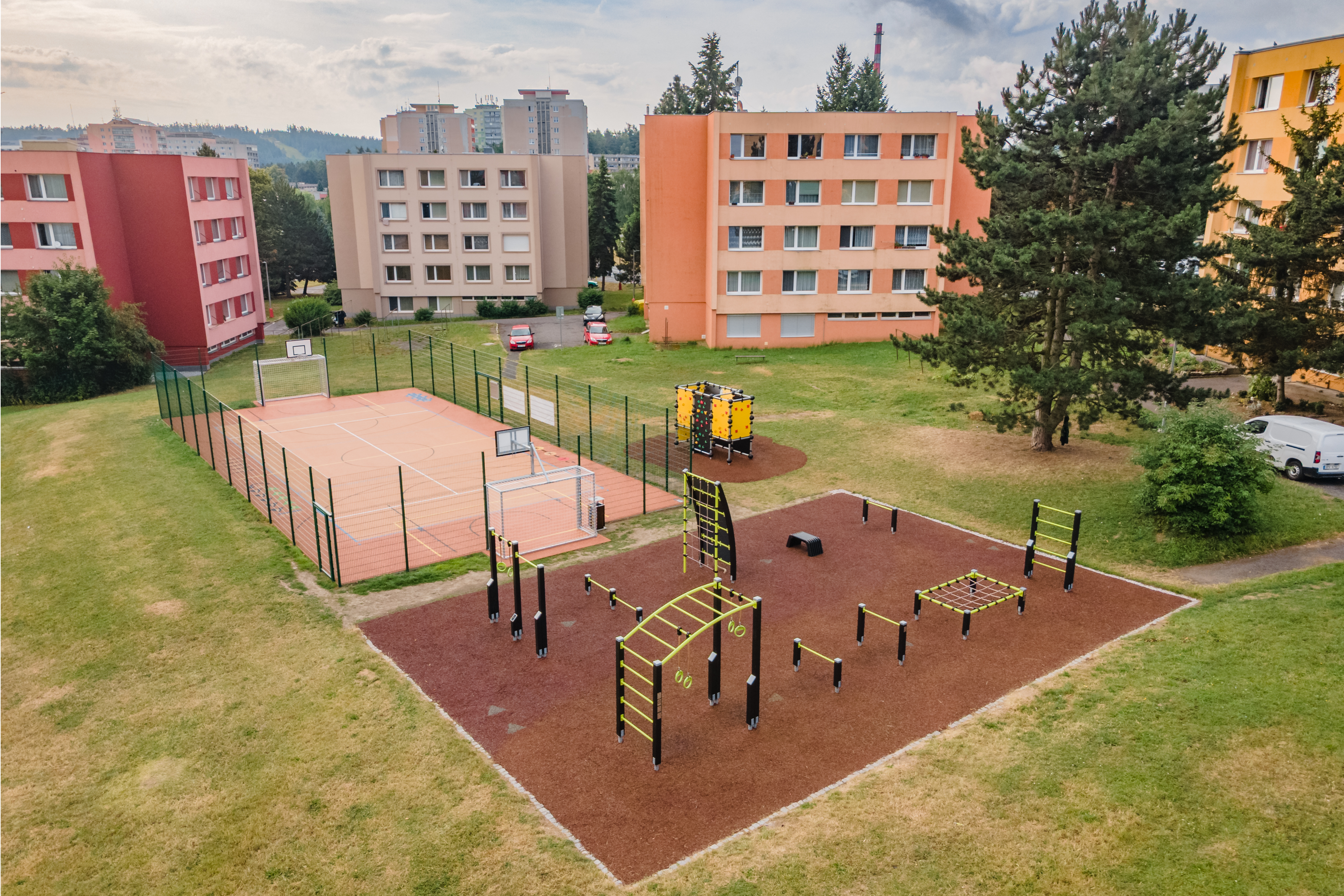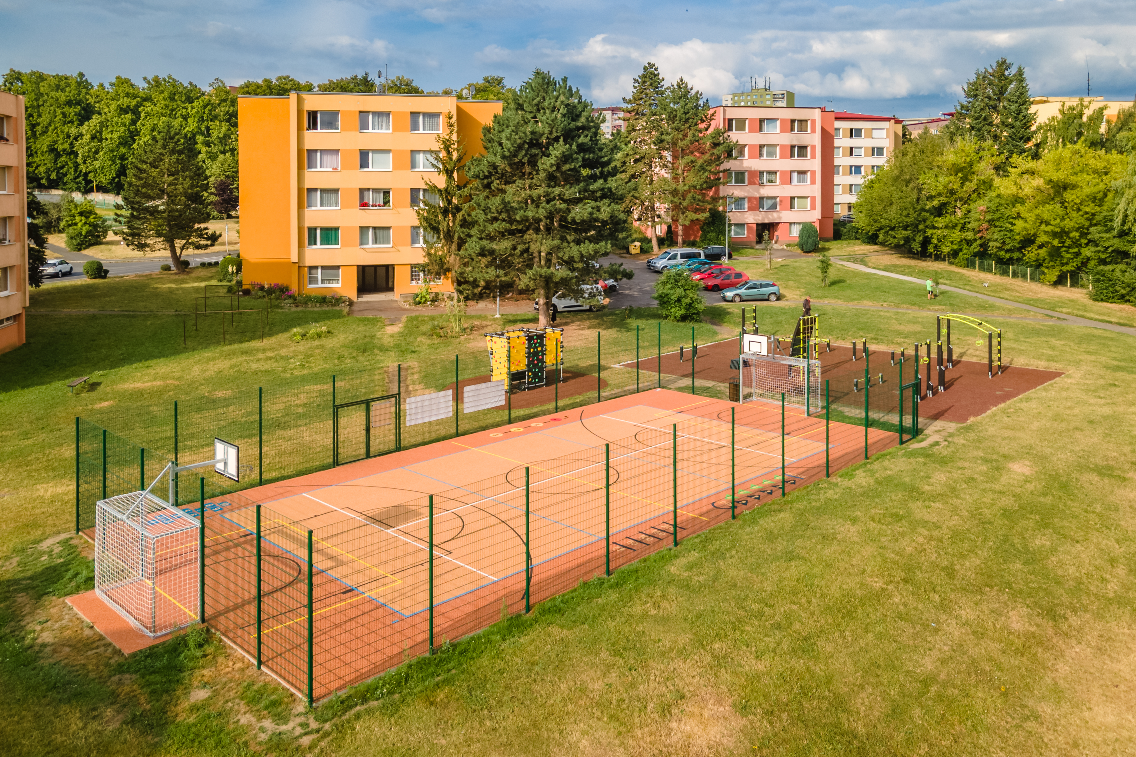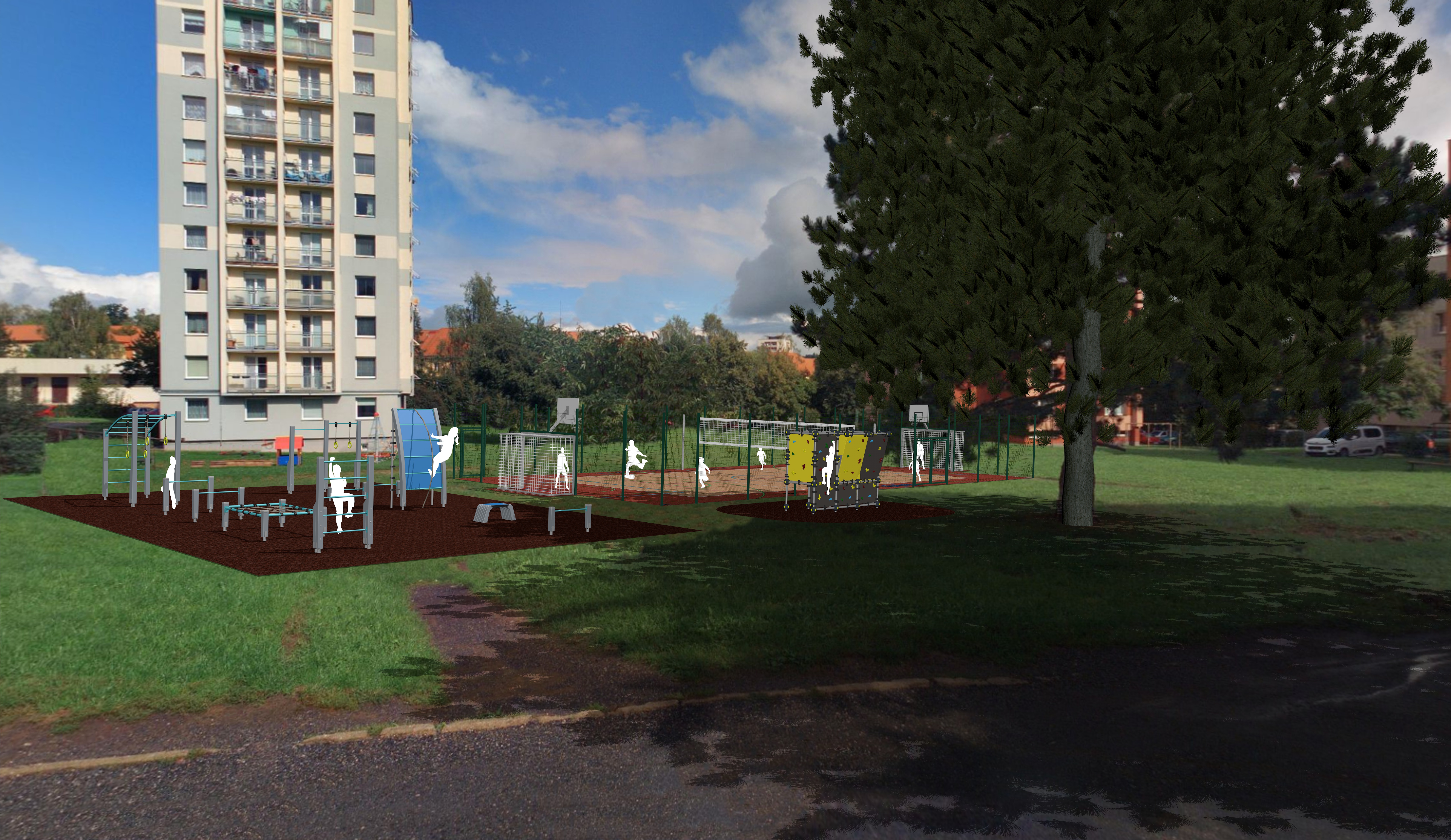 Sportovní prostor je rozdělen do třech částí, kdy dominantou je multifunkční sportovní plocha, určená pro rekreační sport a míčové hry. Dále je zde street workoutové hřiště, ideální pro posilování s vahou vlastního těla, a lezecká stěna, která nabízí bezpečné prostředí pro první lezecké pokusy zejména dětem a mladým sportovcům.