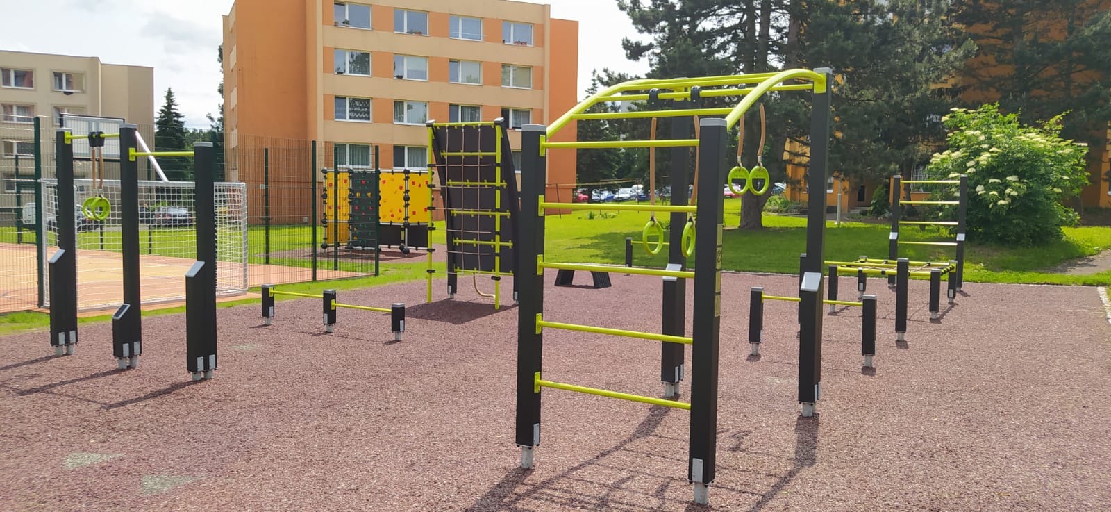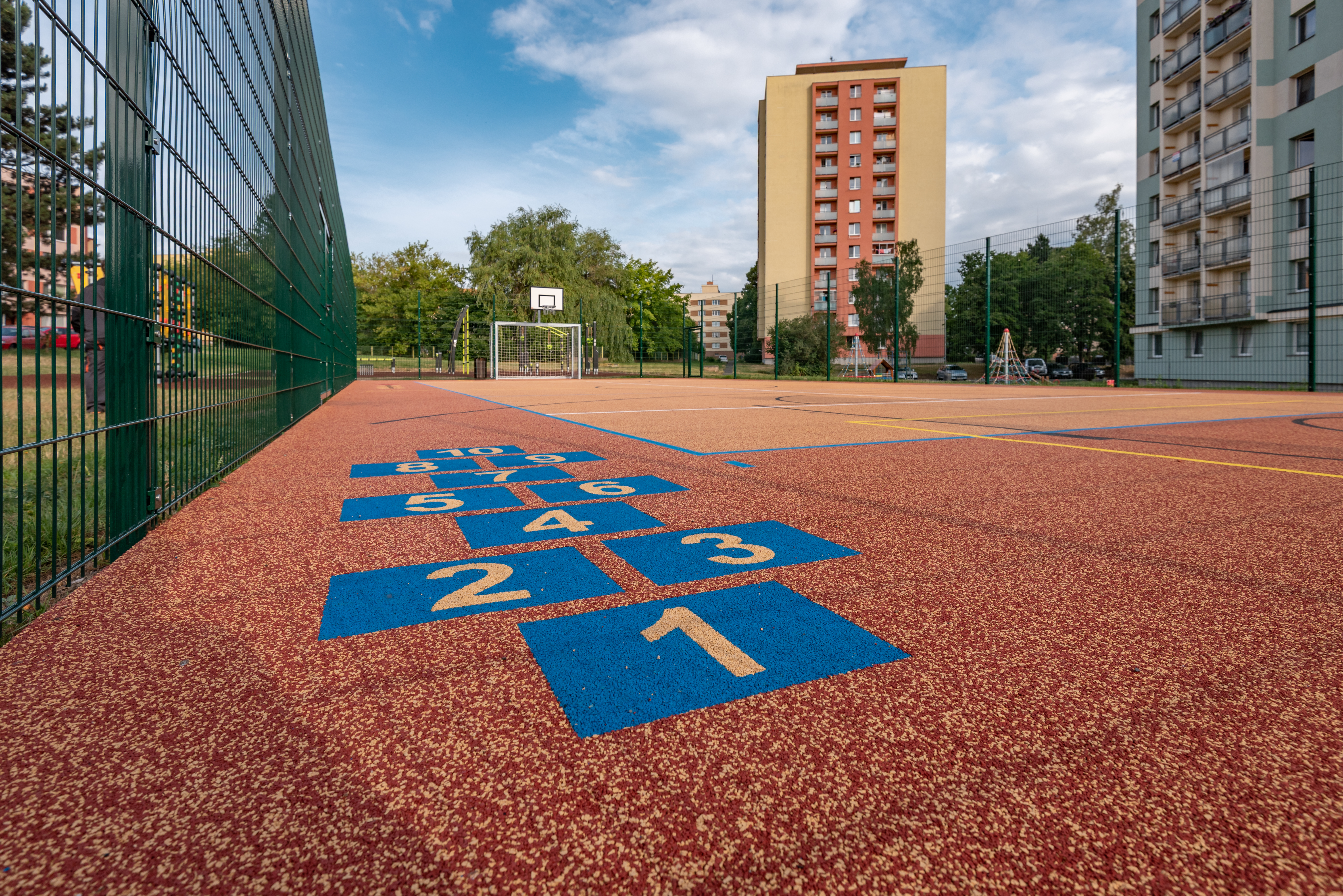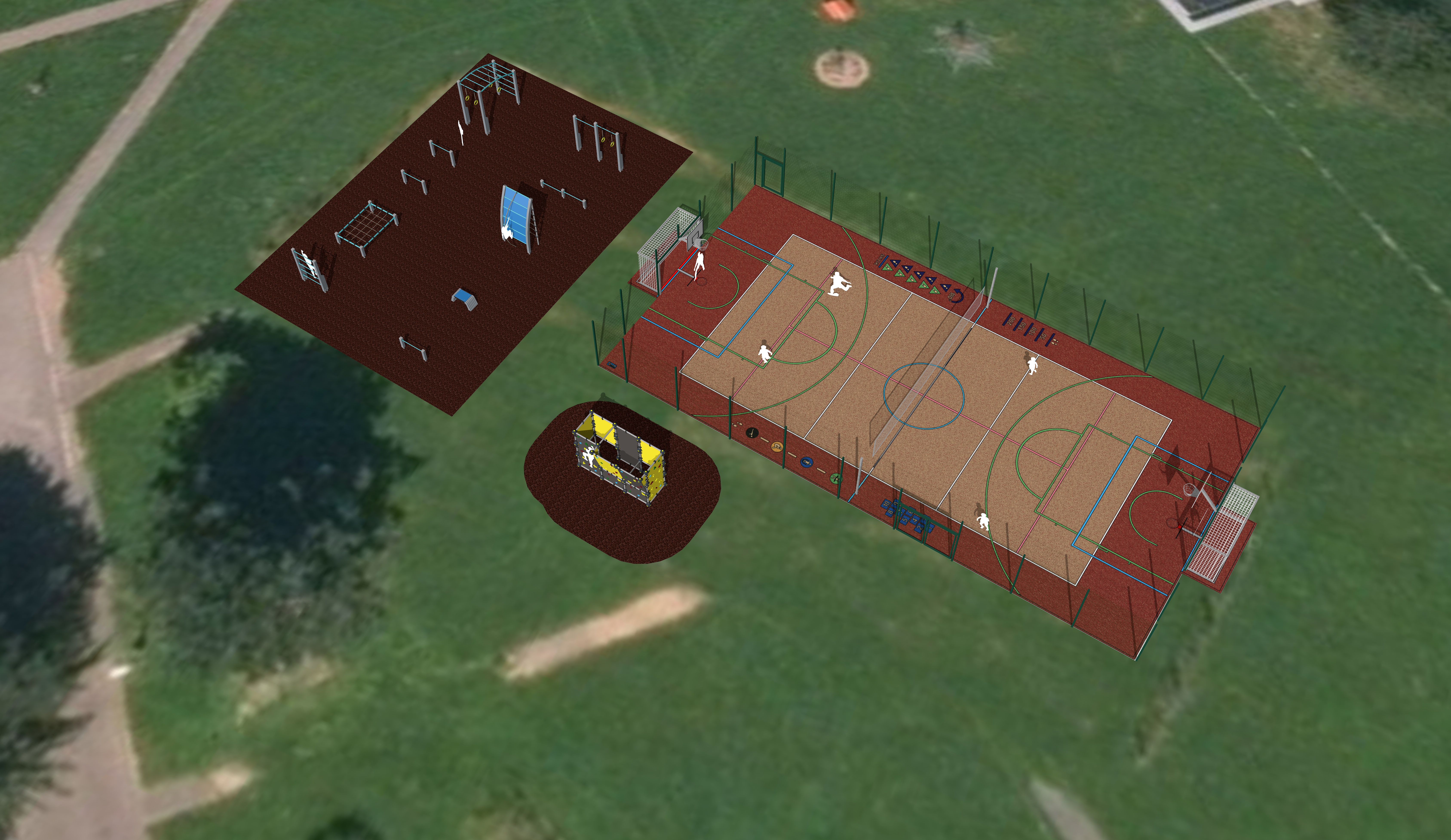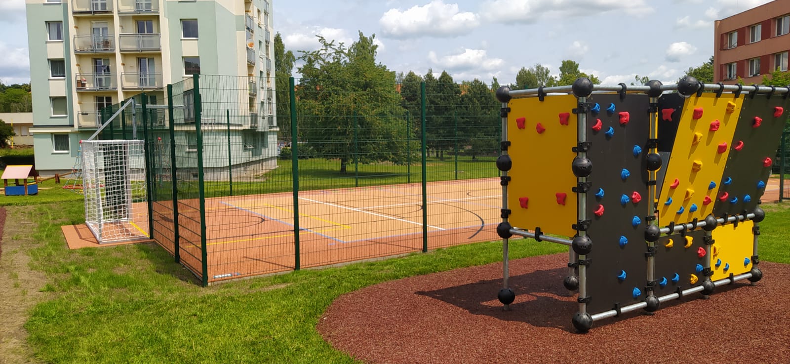 Sportovní prostor je rozdělen do třech částí, kdy dominantou je multifunkční sportovní plocha, určená pro rekreační sport a míčové hry. Dále je zde street workoutové hřiště, ideální pro posilování s vahou vlastního těla, a lezecká stěna, která nabízí bezpečné prostředí pro první lezecké pokusy zejména dětem a mladým sportovcům.