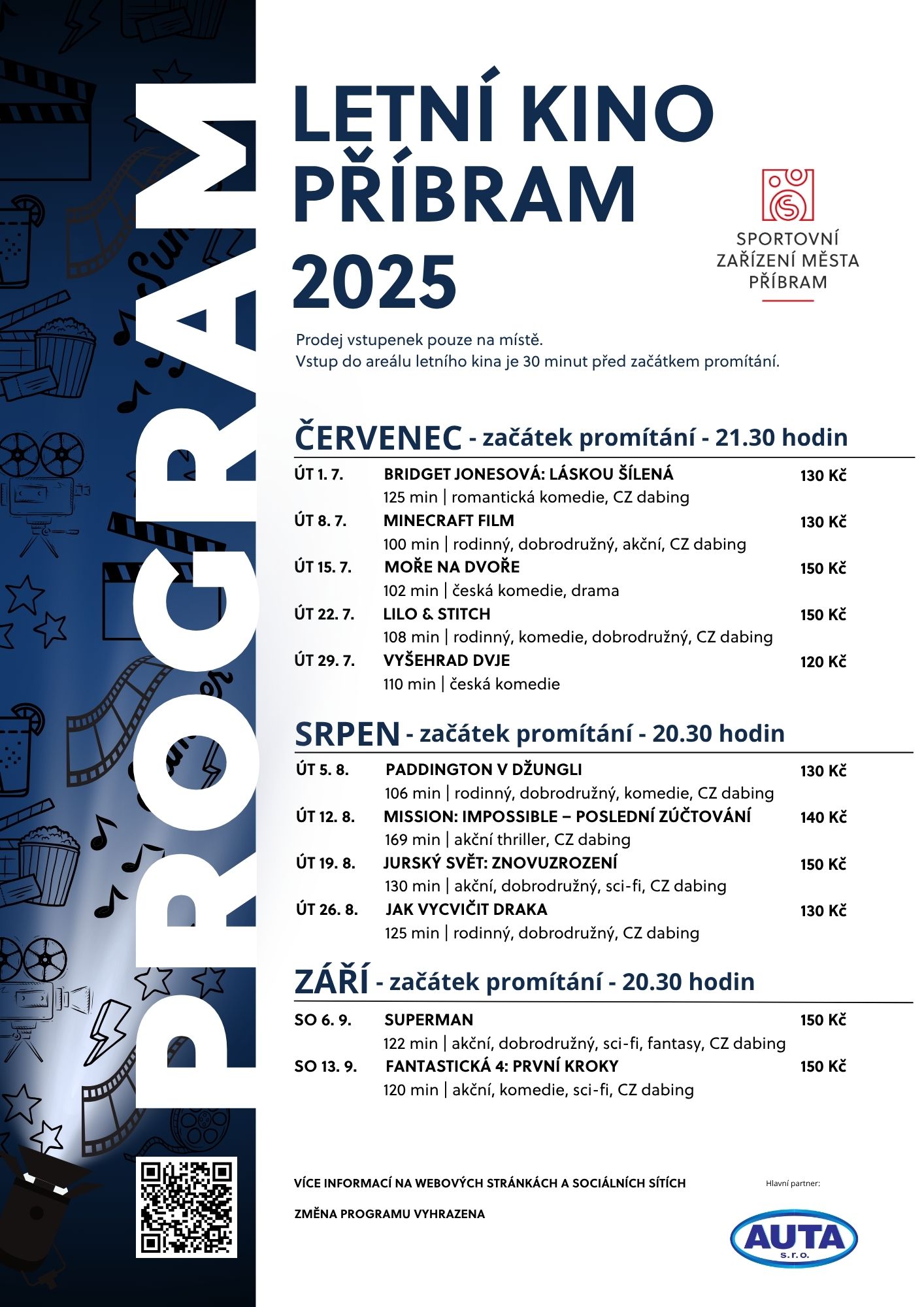 PROMÍTÁNÍ V LETNÍM KINĚ PŘÍBRAM - LÉTO 2025