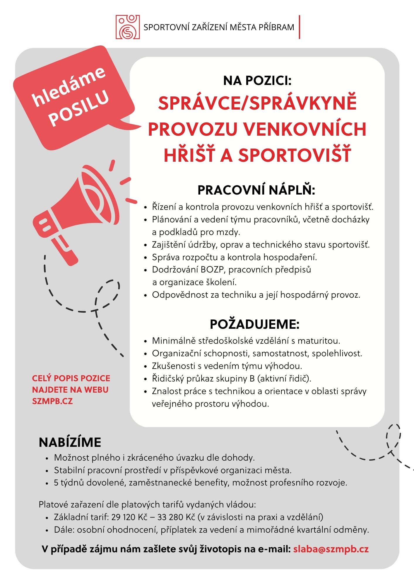V případě zájmu o tyto pozice zasílejte svůj životopis do 7. září 2025 na e-mail: slaba@szmpb.cz