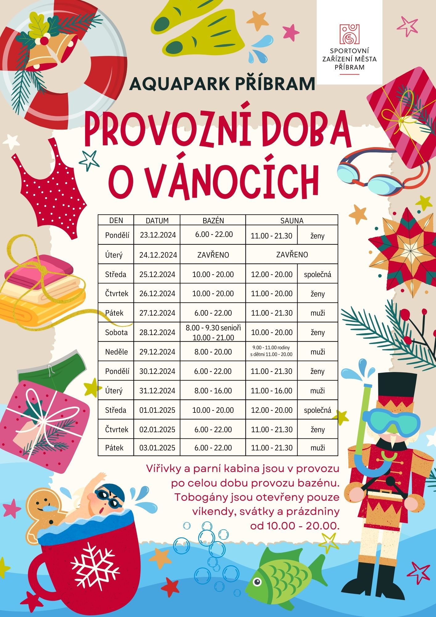 Vánoční provoz v Aquaparku Příbram