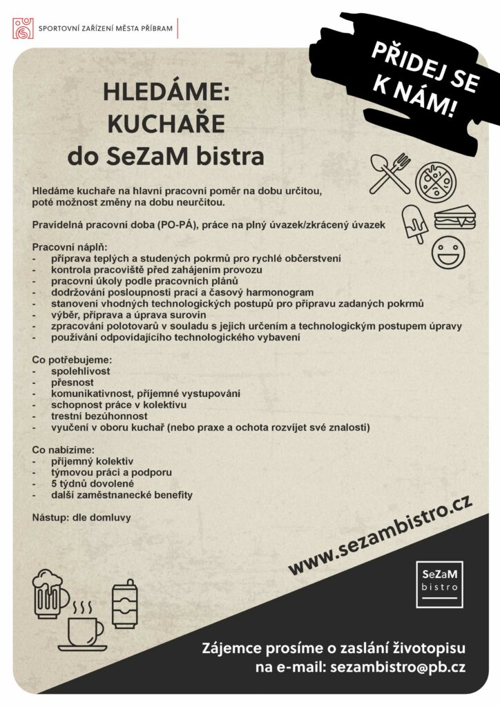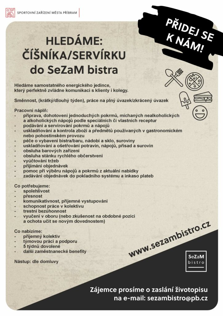 V případě zájmu prosíme o zaslání životopisu na e-mail: sezambistro@pb.cz