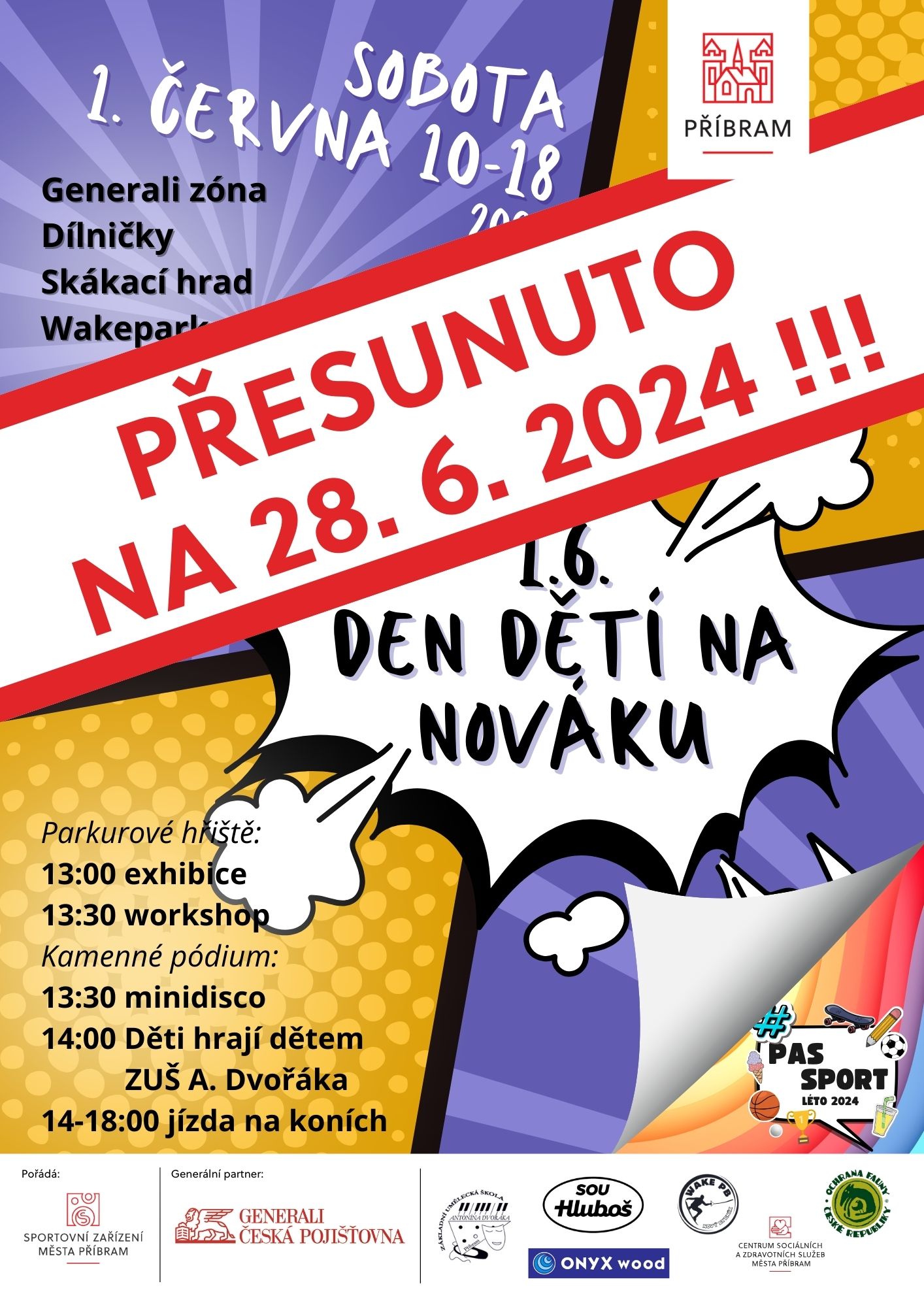 Plánovaná akce Den dětí na Nováku, která se měla konat tento víkend v sobotu 1. 6. 2024, bude z důvodu nepříznivého počasí přesunuta na nový termín.