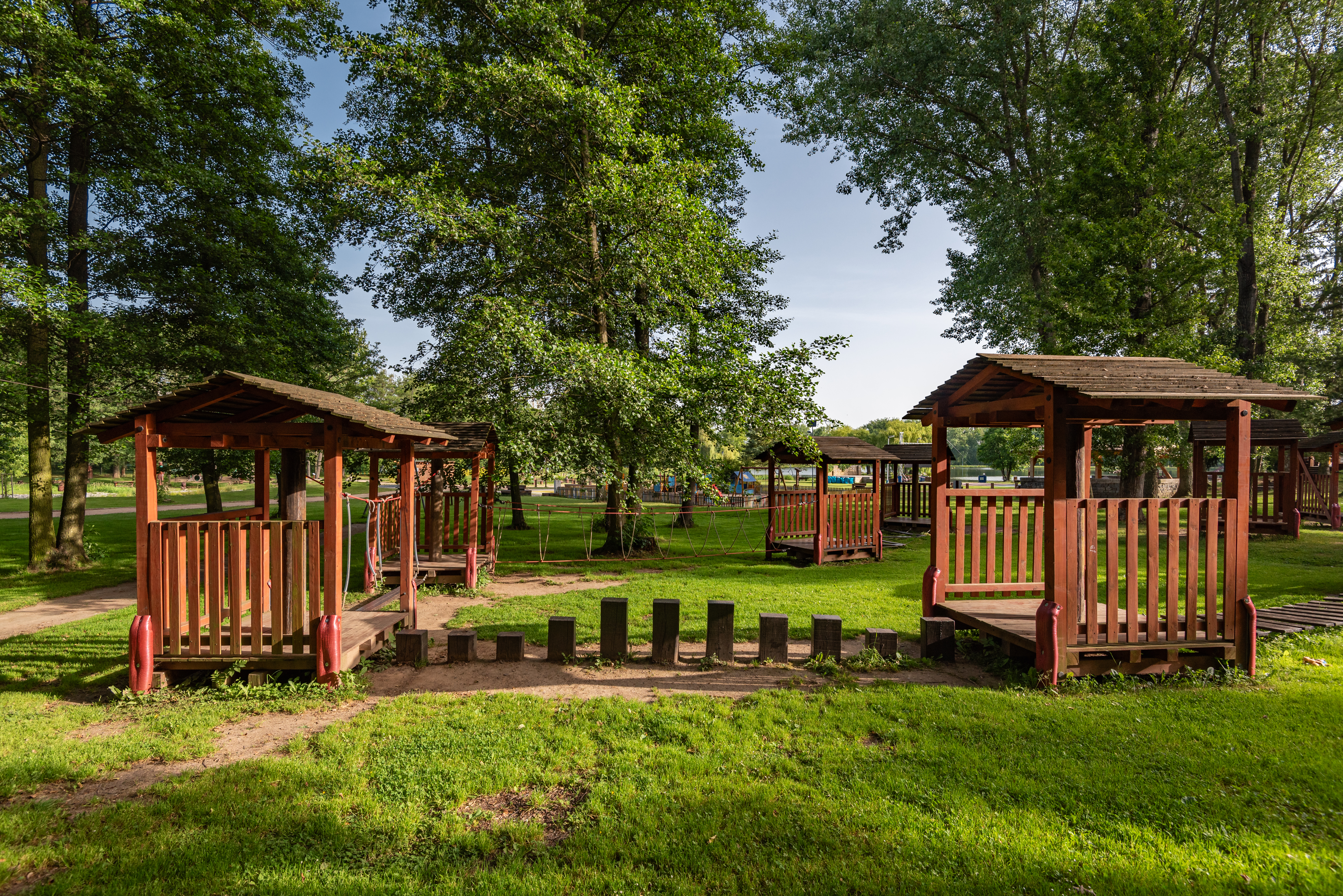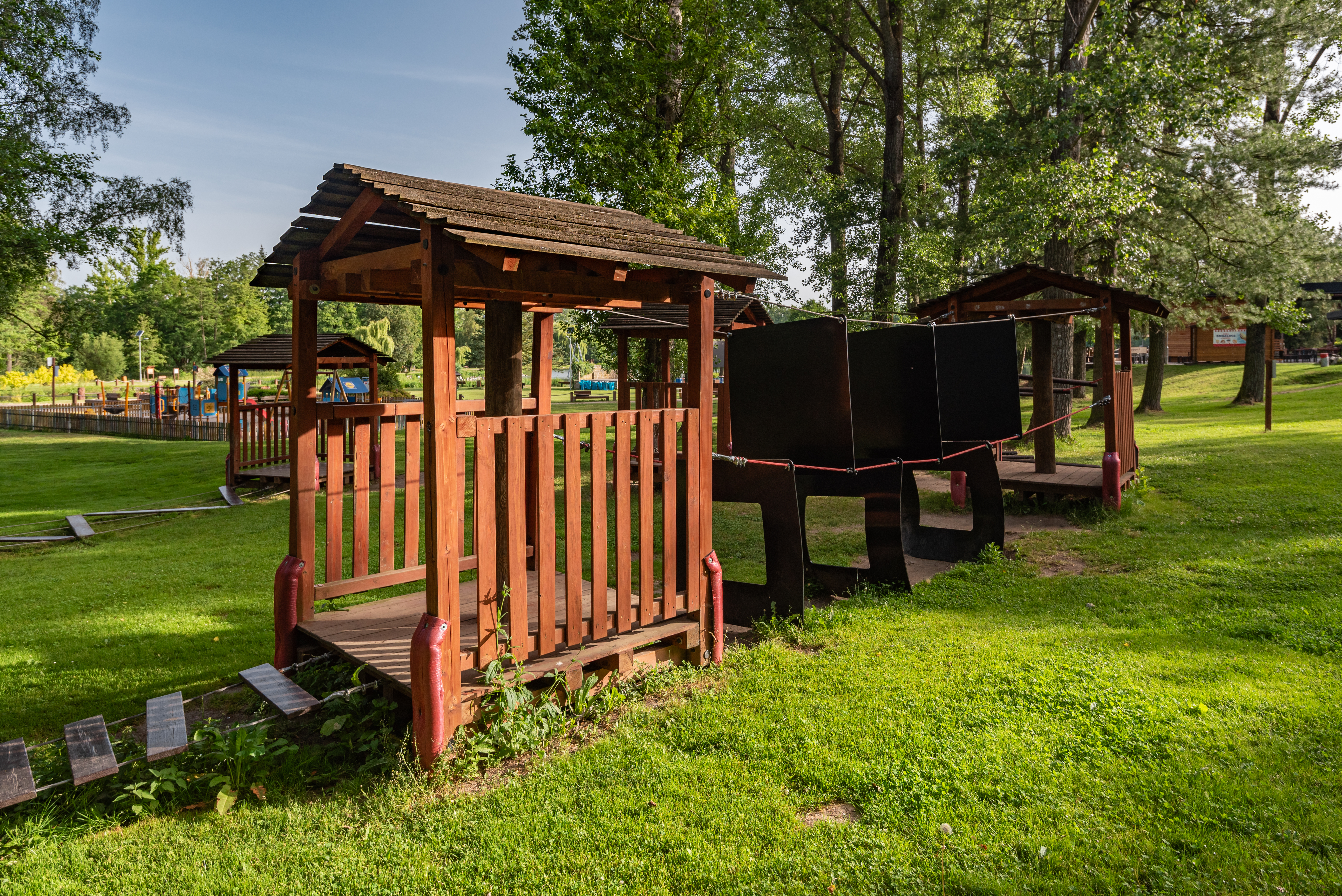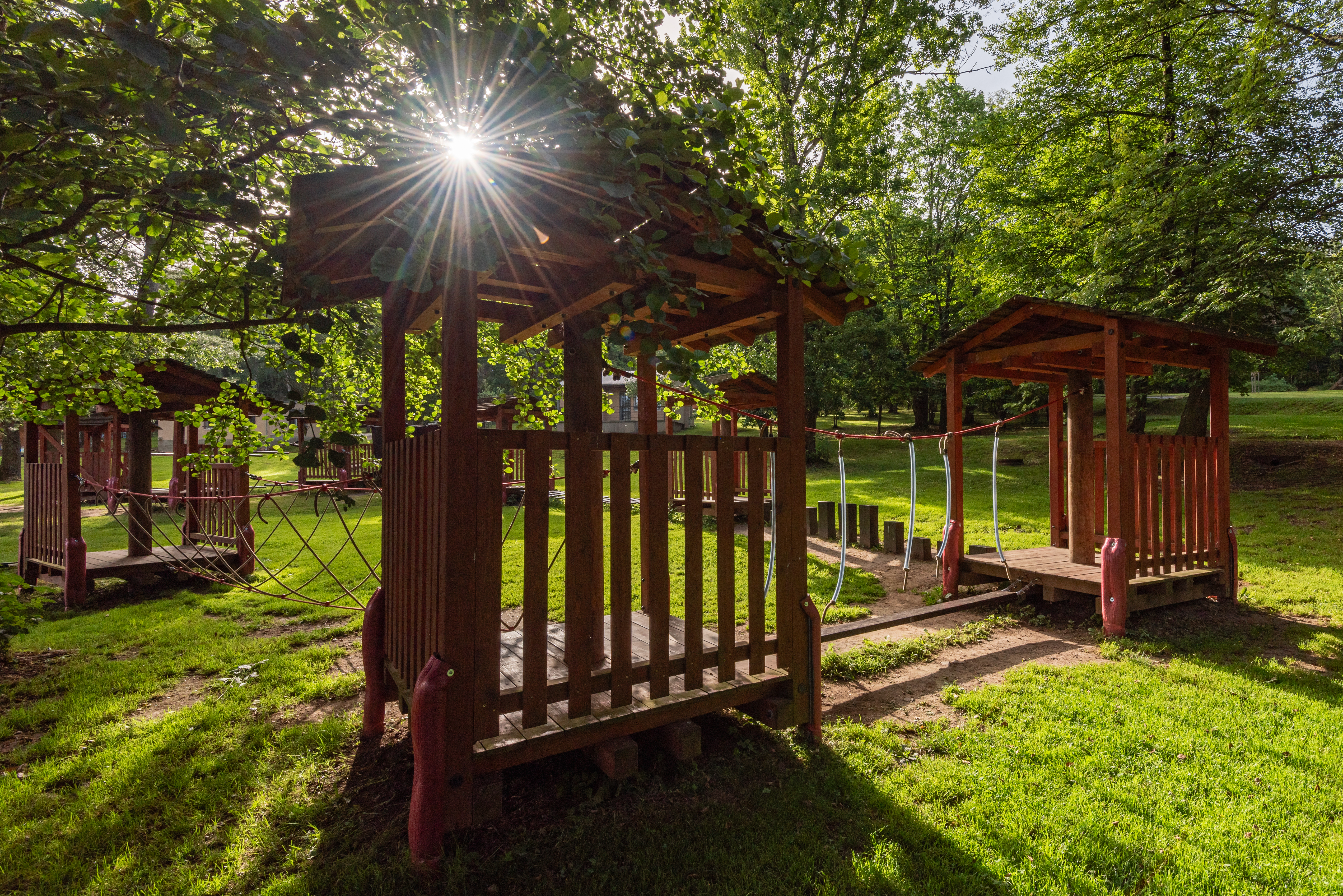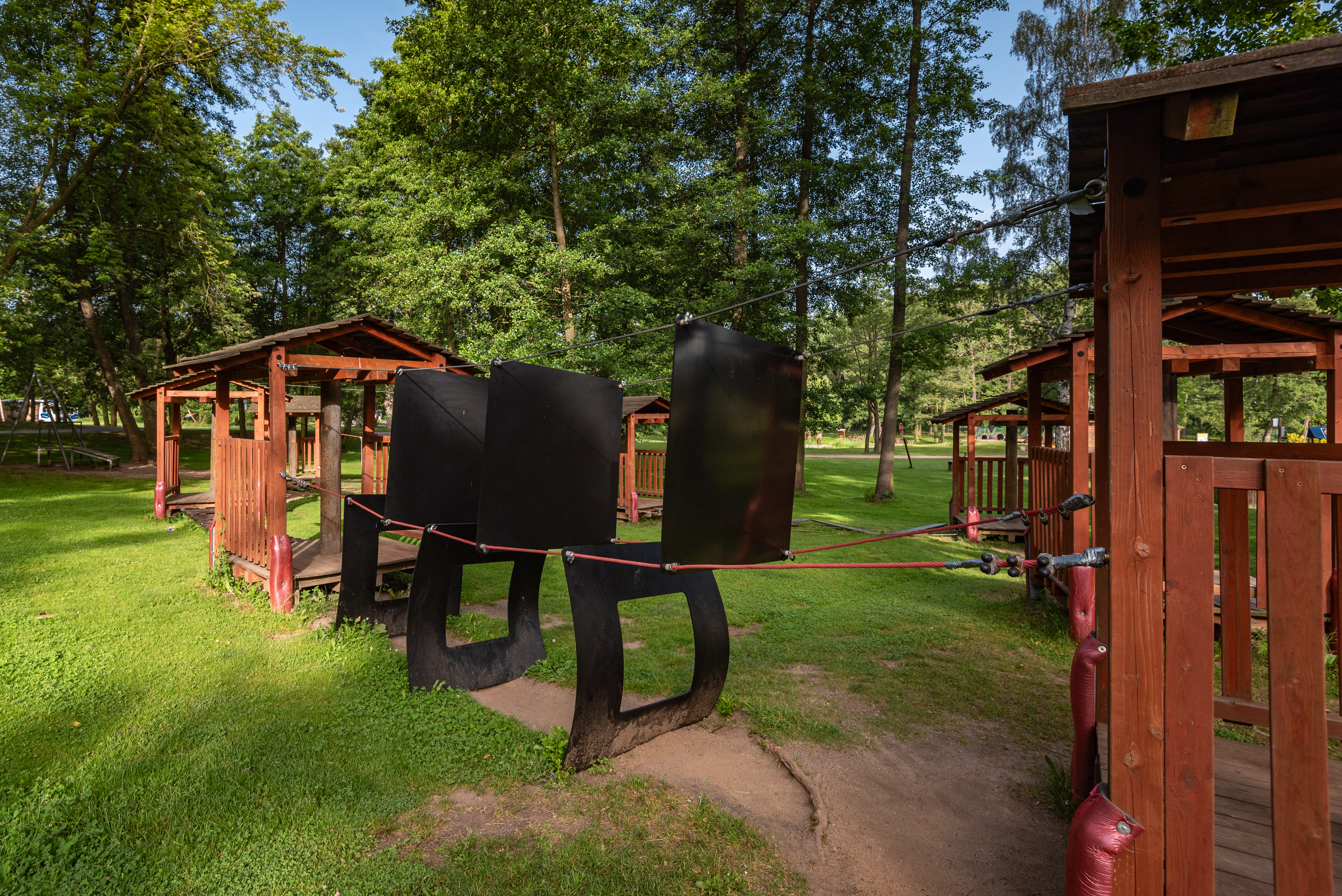 Lanové centrum disponuje certifikovanými prvky se skluzavkou. Spojuje dřevěná stanoviště lanovými cestami. Hřiště rozvíjí motoriku, obratnost a pohyb.