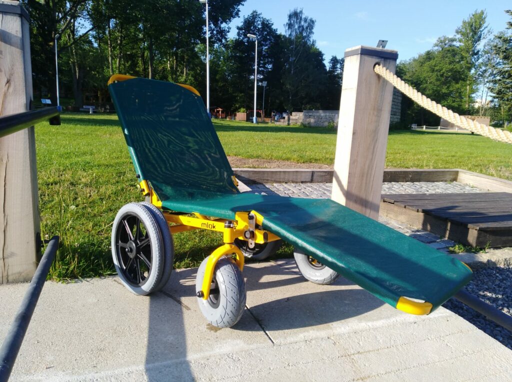 Možnost bezplatného zapůjčení lehátka do vody pro imobilní. Lehátko se půjčuje proti vratné záloze 200 Kč nebo průkazu ZTP.